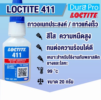 LOCTITE 411 ( ล็อคไทท์ ) กาวอเนกประสงค์ / กาวแห้งเร็ว ลักษณะสีใส ขนาด 20 g