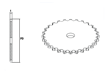 | Type ( A-type ) | No.of Teeth (ฟัน) | Outside Dia. (DO) | Pitch Dia. (Dp) | Shaft Bore Dia. (d) | Weight (kg.) | |